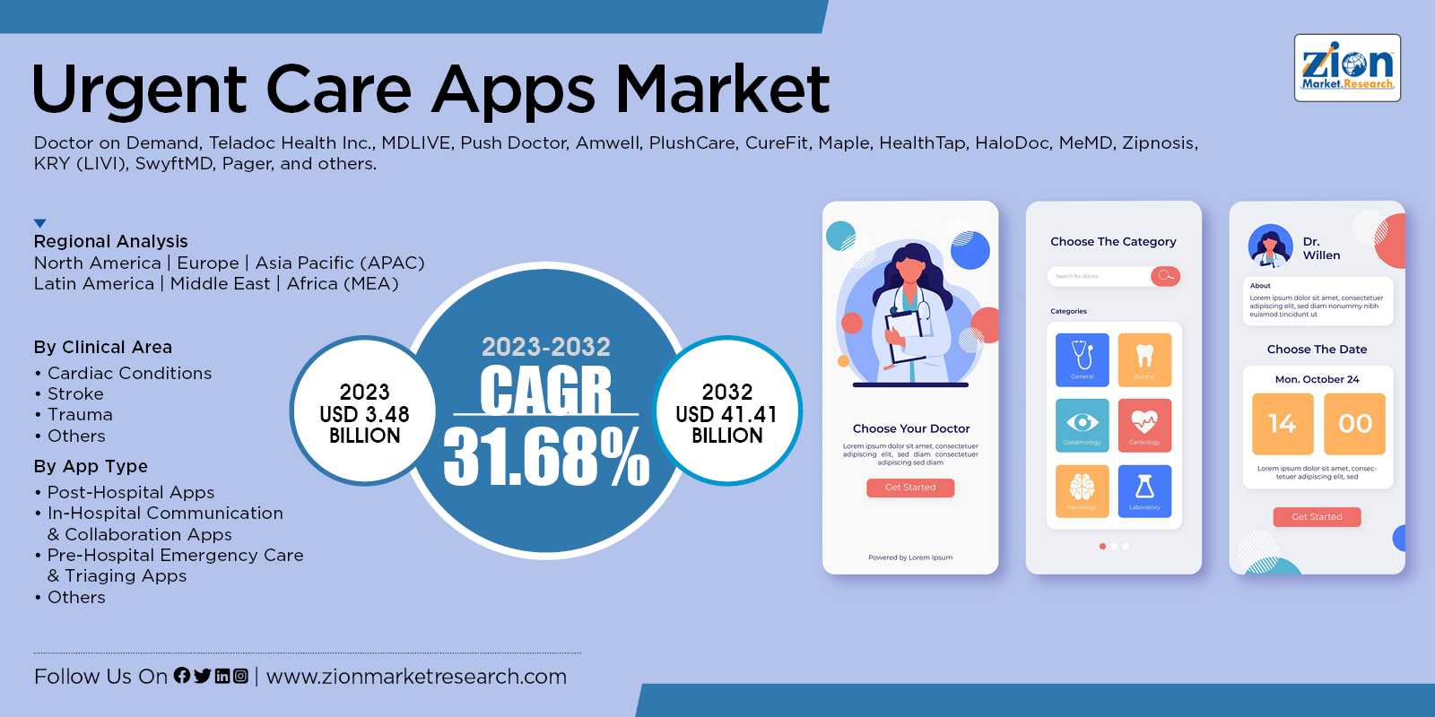 Browse the full "Urgent Care Apps Market by Type (In-hospital Collaboration & Communication Apps, Pre-hospital Triaging &Emergency Care Apps, and Post-hospital Apps) and by Clinical Area (Stroke, Trauma, Cardiac Conditions, and Others): Global Industry Perspective, Comprehensive Analysis, and Forecast, 2024 - 2032 " report at https://www.zionmarketresearch.com/report/urgent-care-apps-market