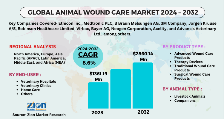 The global animal wound care market is expected to grow at a CAGR of 8.6% during the forecast period.