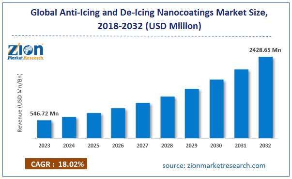 According to a report from Zion Market Research, the global anti-icing and de-icing nanocoatings market was valued at USD 546.72 Million in 2023 and is projected to hit USD 2,428.65 Million by 2032, with a compound annual growth rate (CAGR) of 18.02% during the forecast period 2024-2032.