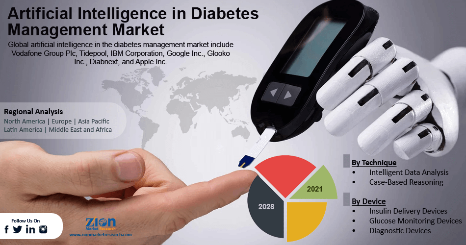 Leading players in the global artificial intelligence in diabetes management market include Vodafone Group Plc, Tidepool, IBM Corporation, Google Inc., Glooko Inc., Diabnext, and Apple Inc, among others.