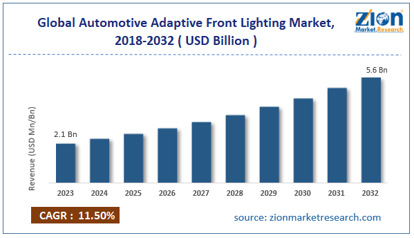 The global automotive adaptive front lighting market size was worth around USD 2.1 billion in 2023 and is predicted to grow to around USD 5.6 billion by 2032 with a compound annual growth rate (CAGR) of roughly 11.5% between 2024 and 2032.