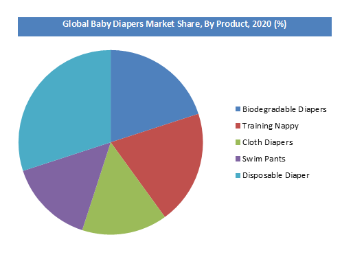 Request Free SampleBased on product, the global baby diapers market is segmented into disposable diapers, training pants, biodegradable diapers, cloth diapers and swim pants.