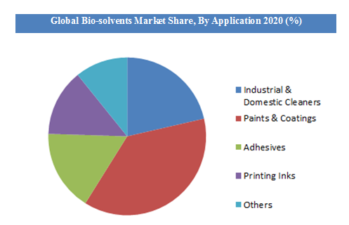 On the basis of application, the bio-solvents market is segmented as domestic and industrial cleaners, adhesives, paints and coatings, printing inks, and others. Paints and coatings dominated the bio-solvents industry in 2020, accounting for almost 37.5% of total bio-solvents sales. In the near future, the global bio-solvents industry is expected to be dominated by the paints and coatings application division.