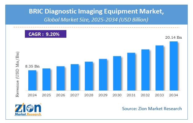 The global bric diagnostic imaging equipment market is expected to grow at a CAGR of 9.2% during the forecast period.