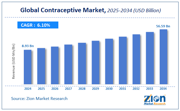 The global contraceptive market size was worth around USD 31.37 Billion in 2024 and is predicted to grow to around USD 56.59 Billion by 2034 with a compound annual growth rate (CAGR) of roughly 6.1% between 2025 and 2034.