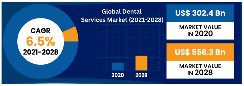 The global dental services market is expected to grow at a CAGR of 6.6% during the forecast period.