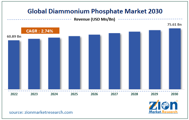 The global diammonium phosphate market size was worth around USD 60.89 Billion in 2022 and is predicted to grow to around USD 75.61 Billion by 2030 with a compound annual growth rate (CAGR) of roughly 2.74% between 2023 and 2030.
