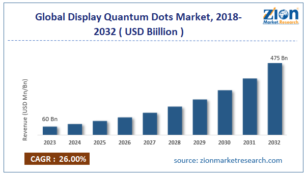 According to a study, the global display quantum dots industry size was $60 billion in 2023 and is projected to reach $475 billion by the end of 2032.