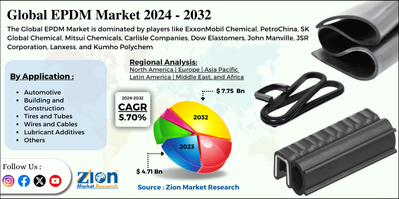 The global EPDM (Ethylene Propylene Diene Monomer) market size was worth around USD 4.71 Billion in 2023 and is predicted to grow to around USD 7.75 Billion by 2032 with a compound annual growth rate (CAGR) of roughly 5.70% between 2024 and 2032.