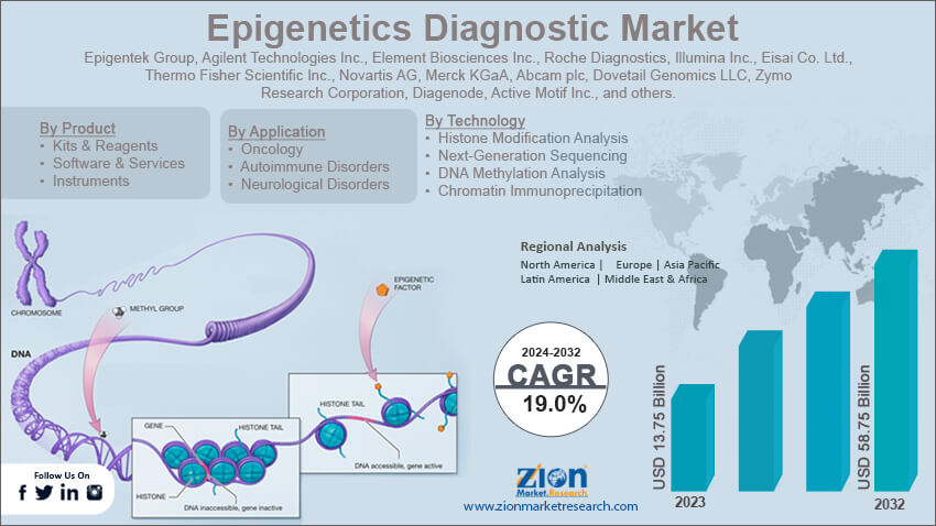 The global epigenetics diagnostic market is led by players such as Epigentek Group, Agilent Technologies, Inc., Element Biosciences, Inc., Roche Diagnostics, Illumina, Inc., Eisai Co., Ltd., Thermo Fisher Scientific, Inc., Novartis AG, Merck KGaA, Abcam plc, Dovetail Genomics LLC, Zymo Research Corporation, Diagenode, and Active Motif, Inc.