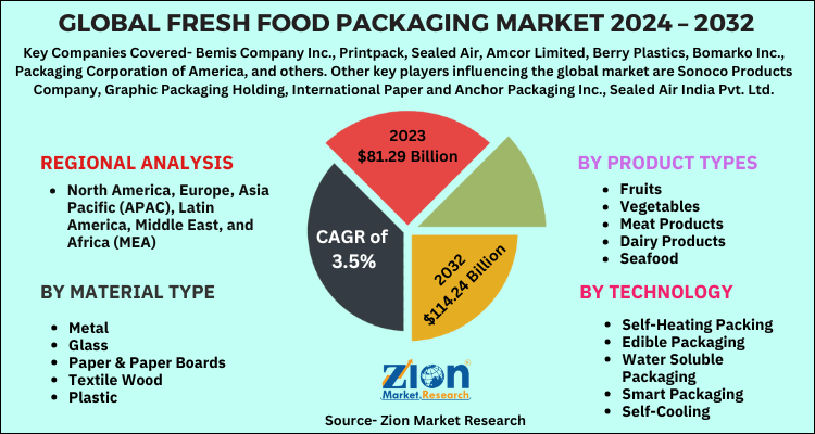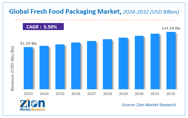 Zion Market Research has published a report on the global Fresh Food Packaging Market, estimating its value at USD 81.29 Billion in 2023, with projections indicating that it will reach USD 114.24 Billion by 2032. The market is expected to expand at a compound annual growth rate (CAGR) of 3.5% over the forecast period 2024-2032.