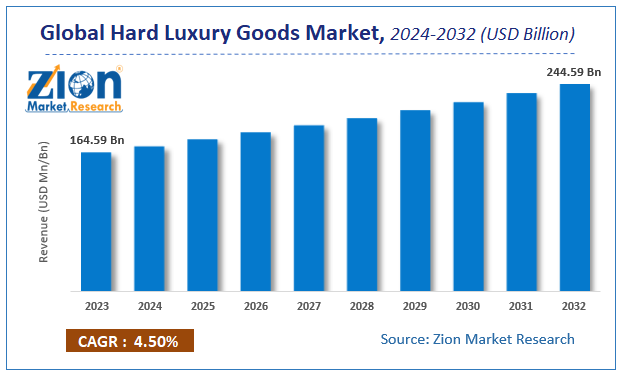 The CAGR value of Hard Luxury Goods Market is expected to be around 4.50% during 2024-2032.