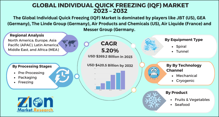 According to the report published by Zion Market Research, the global Individual Quick Freezing (IQF) Market size was valued at USD 21.59 Billion in 2023 and is predicted to reach USD 33.92 Billion by the end of 2032. The market is expected to grow with a CAGR of 5.15% during the forecast period. The report analyzes the global Individual Quick Freezing (IQF) Market’s growth drivers, restraints, and impact on demand during the forecast period. It will also help navigate and explore the arising opportunities in the Individual Quick Freezing (IQF) Market industry.
