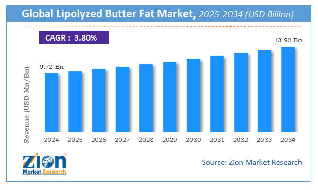 According to a study, the global lipolyzed butter fat market size was worth around USD 9.72 Billion in 2024 and is expected to reach USD 13.92 Billion by 2034.