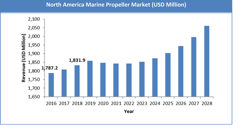 The North America region is projected to grow at a CAGR of 1.6% over the forecast period. This surge is due to the rising investments in research and development in marine equipment manufacturing is boosting the market growth in APAC region. The growing demand for high efficiency, low cost and eco-friendly propellers is contributing to the technologically advance marine propellers. The upsurge in international trade due to cost effective transport manufactured goods and raw materials are driving the growth of the North America region. There are significant investments by the leading manufacturers in the region for the development of electric propellers.