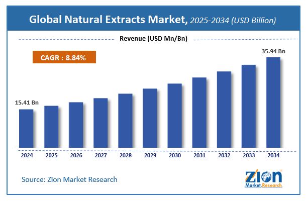 According to a study, the global natural extracts market size was worth around USD 15.41 Billion in 2024 and is expected to reach USD 35.94 Billion by 2034.