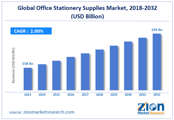 According to a study, the global office stationery supplies industry size was $158 billion in 2023 and is projected to reach $199 billion by the end of 2032.