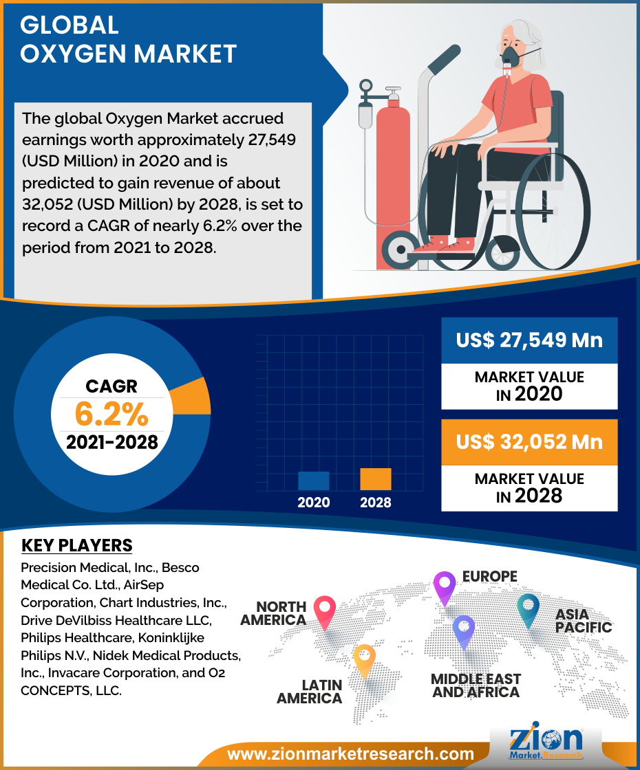 Oxygen is vital for life on earth and is colorless in nature. Apparently, it is provided to patients through cylinders or cans. Moreover, wide spread of COVID-19 pandemic had resulted into lucrative need for oxygen and this had facilitated opening of new oxygen manufacturing units across globe to increase oxygen supply to COVID-19 patients. Furthermore, oxygen is utilized as catalytic agent in myriad industrial processes. Increase in demand for medical oxygen concentrators will boost growth of oxygen market.