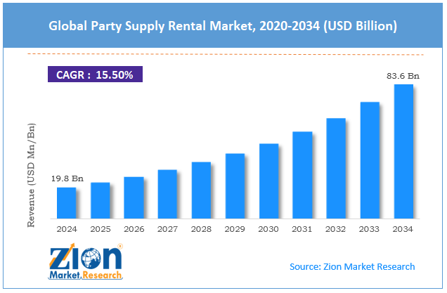 The global party supply rental market is expected to grow at a CAGR of 15.5% during the forecast period.