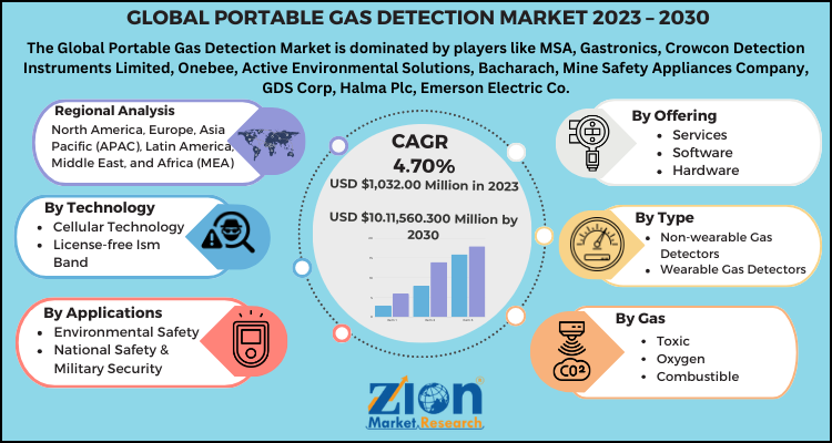 According to the report published by Zion Market Research, the global Portable Gas Detection Market size was valued at USD 1,032.00 Million in 2023 and is predicted to reach USD 1,560.30 Million by the end of 2032. The market is expected to grow with a CAGR of 4.70% during the forecast period. The report analyzes the global Portable Gas Detection Market’s growth drivers, restraints, and impact on demand during the forecast period. It will also help navigate and explore the arising opportunities in the Portable Gas Detection Market industry.