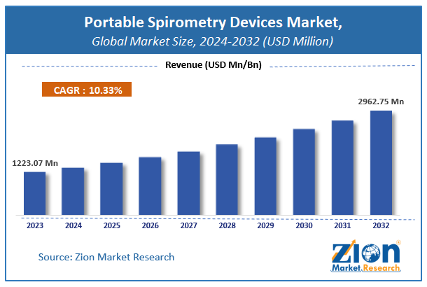 According to a study, the global portable spirometry devices Industry size was $1223.07 Million in 2023 and is projected to reach $2962.75 Million by 2032.