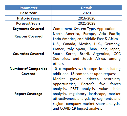 | Segments Covered | By Component, By System Type, By Application and By Region |