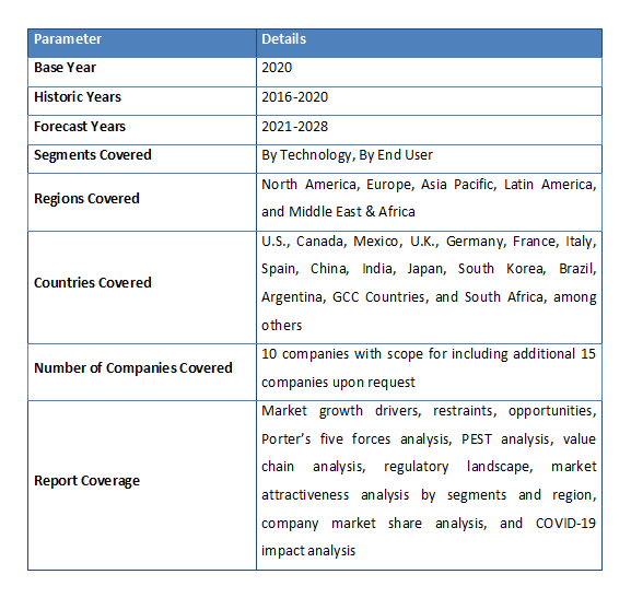 | Segments Covered | By Technology, By End User Industry and By Region |