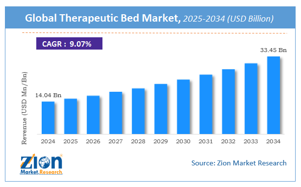 The global therapeutic bed market size was worth around USD 14.04 Billion in 2024 and is predicted to grow to around USD 33.45 Billion by 2034 with a compound annual growth rate (CAGR) of roughly 9.07% between 2025 and 2034. The report analyzes the global therapeutic bed market's drivers, restraints/challenges, and the effect they have on the demands during the projection period. In addition, the report explores emerging opportunities in the therapeutic bed industry.