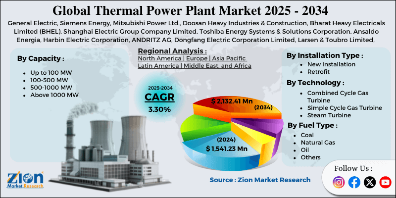 The CAGR value of the thermal power plant market is expected to be around 3.30% during 2025-2034.