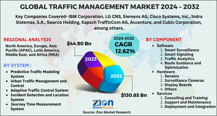 The global Traffic Management market size was worth around USD 44.90 billion in 2023 and is predicted to grow to around USD 130.85 billion by 2032 with a compound annual growth rate (CAGR) of roughly 12.62% between 2024 and 2032.
