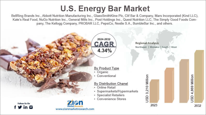 According to a study, the global U.S energy bar industry earnings were $3,210 million in 2023 and is projected to reach $4,869 million by the end of 2032.